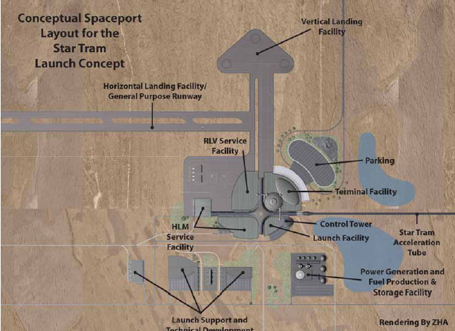 The conceptual spaceport plan for Maglaunch is based upon the assumption that the complex will be located in a very large expanse of relatively flat terrain with a westto- east orientation of the launch system. Maglaunch site alternatives were not evaluated as part of this study. As a result, the analysis and descriptions of the spaceport facilities in this report are not site specific.